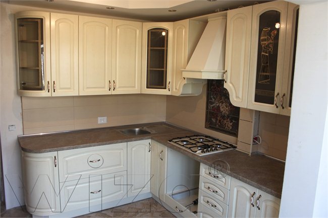 • Белый шпон с фрезой придают кухне классический шик.