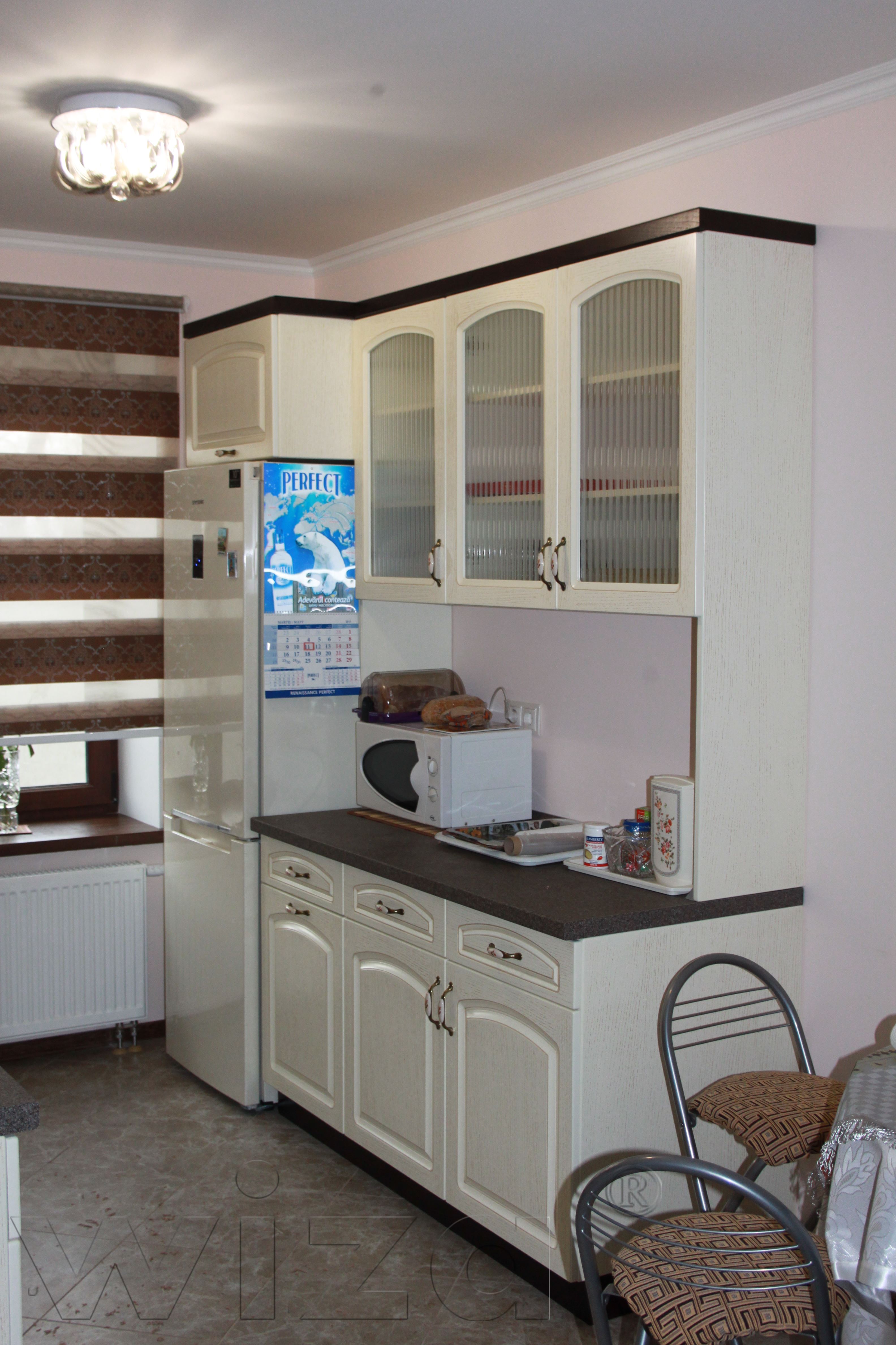 • Сочитание двух материалов:шпона и краски,делает кухню практичной и яркой.