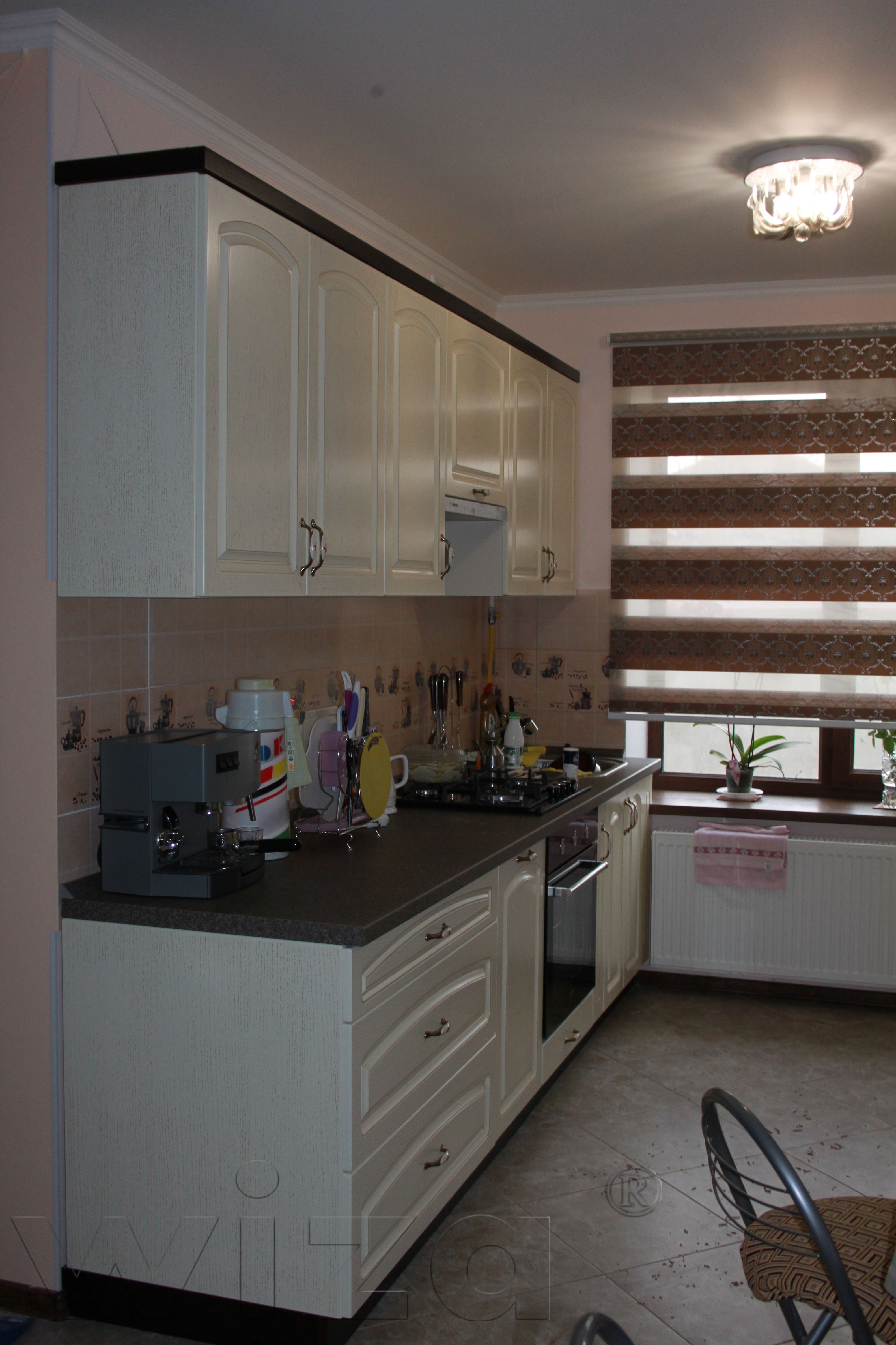 • Белый шпон с фрезой придают кухне классический шик.