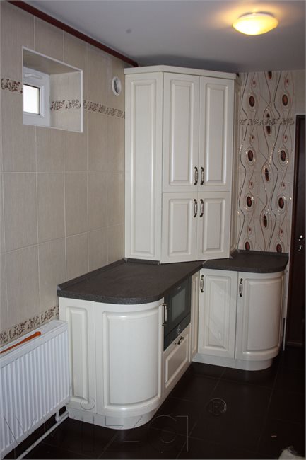 • Белый шпон с фрезой придают кухне классический шик.