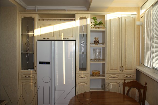 • Белый шпон с фрезой придают кухне классический шик.