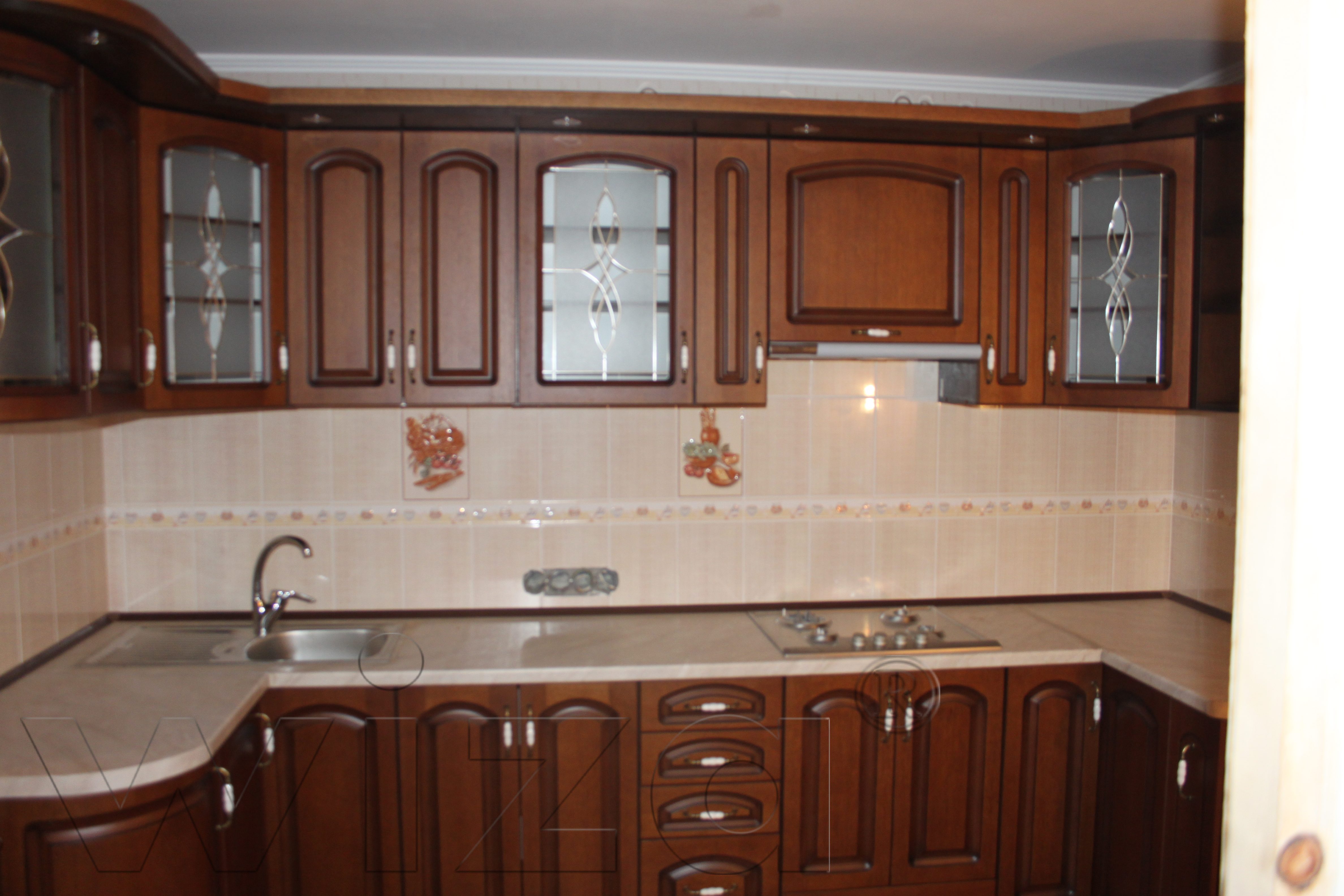 • Сочитание двух материалов:шпона и краски,делает кухню практичной и яркой.