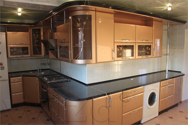 • Применение гнутых фасадов придает особую пластичность дизайну кухни.