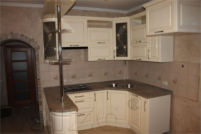 • Применение гнутых фасадов придает особую пластичность дизайну кухни.