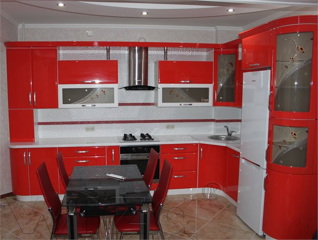 • <em>Глянцевые крашеные фасады эффектно выглядят в красном и белом цвете.</em>