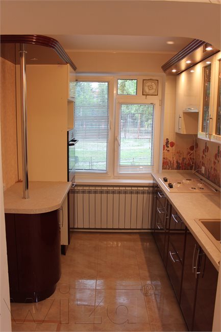 • Распространенное дизайнерское решение — небольшая кухня и барная стойка на месте бывшего подоконника.