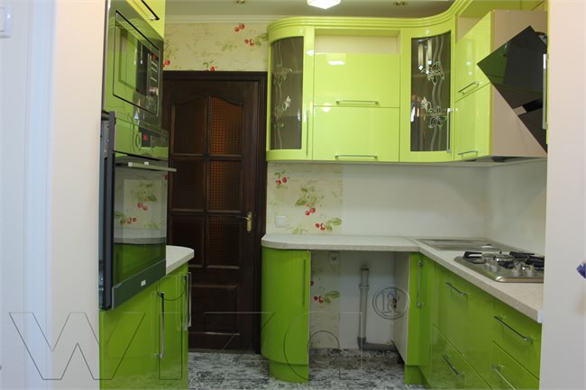 • Применение гнутых фасадов придает особую пластичность дизайну кухни.