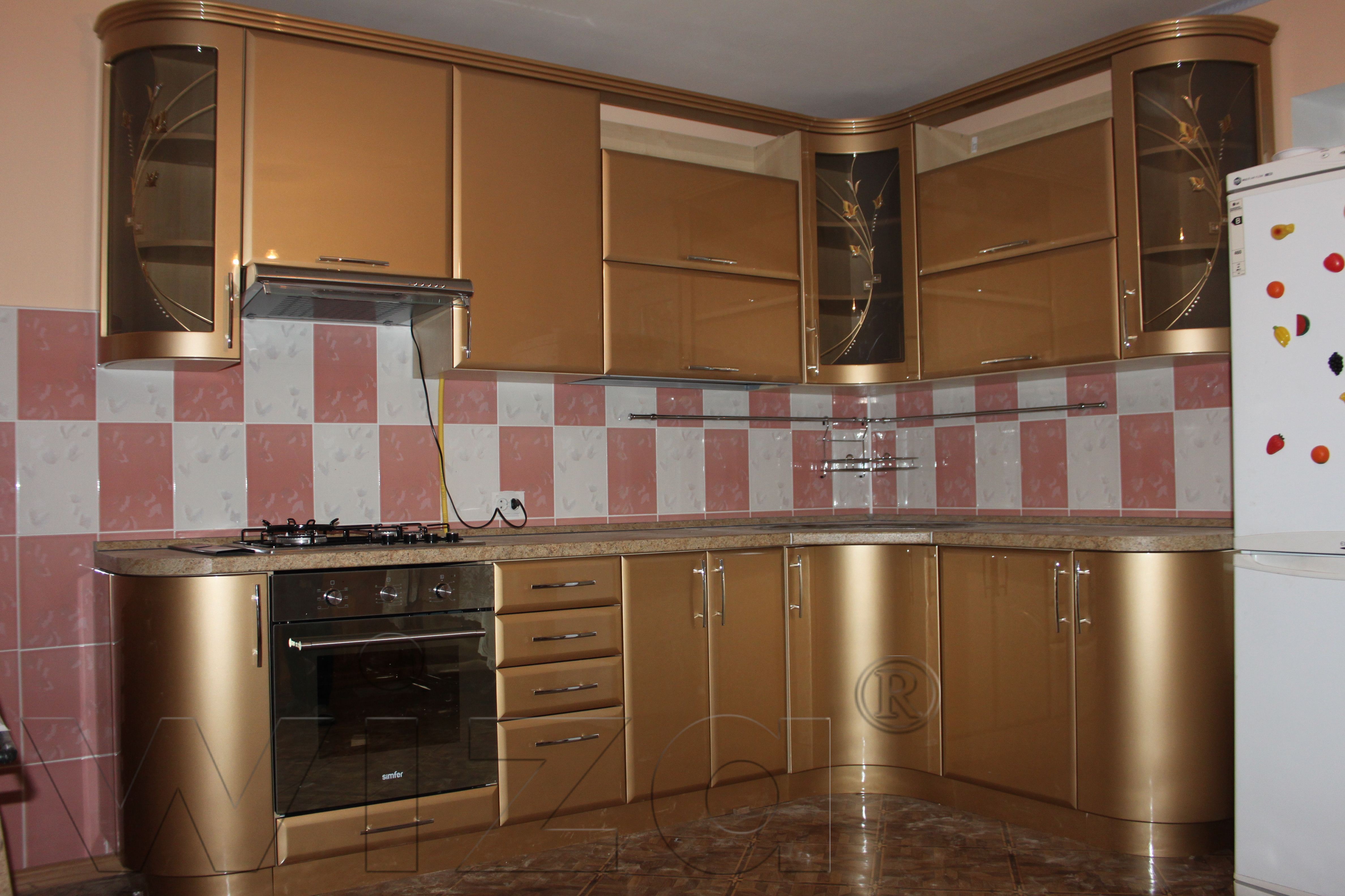 • Применение гнутых фасадов придает особую пластичность дизайну кухни.