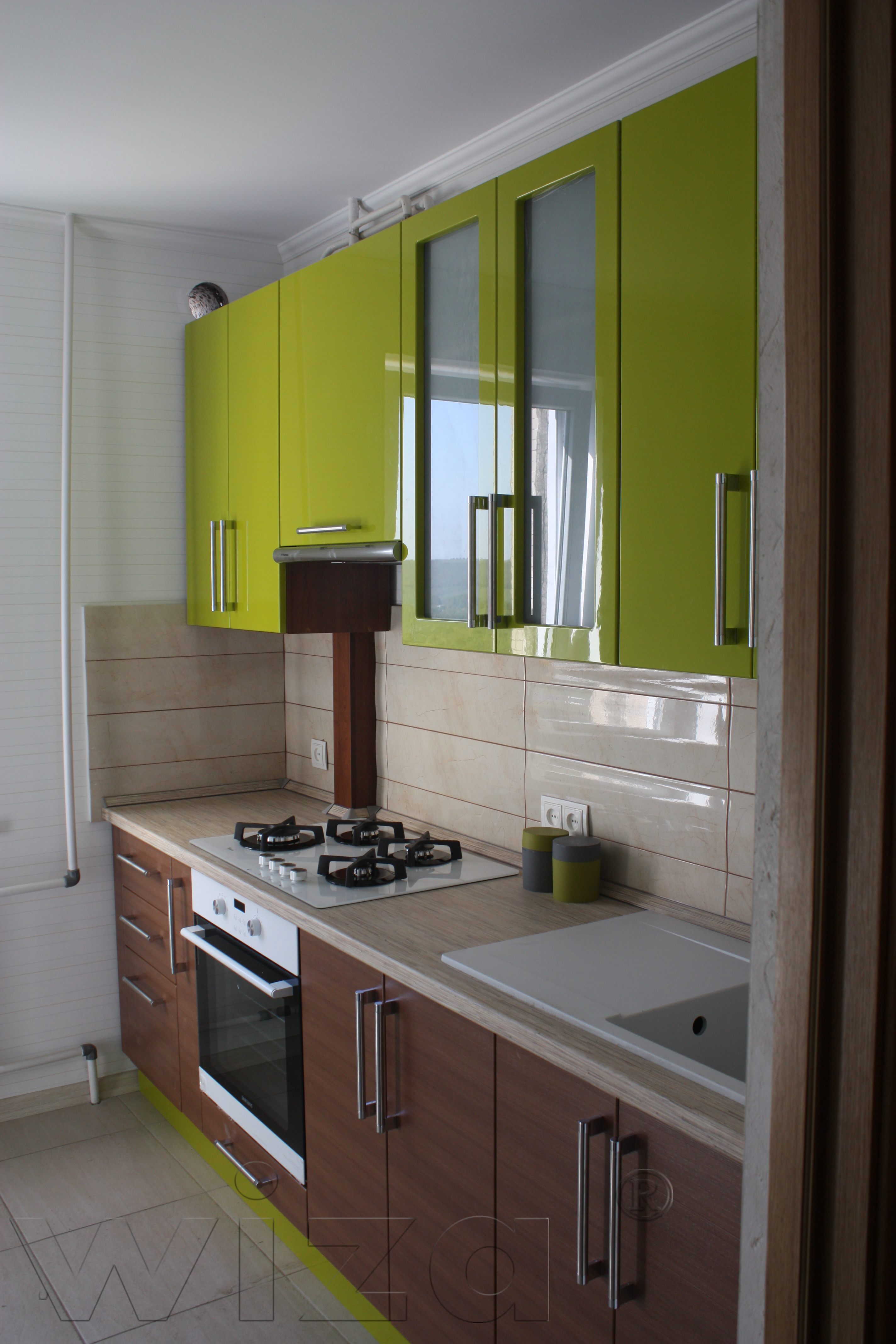 • Линейная кухня оливкового цвета