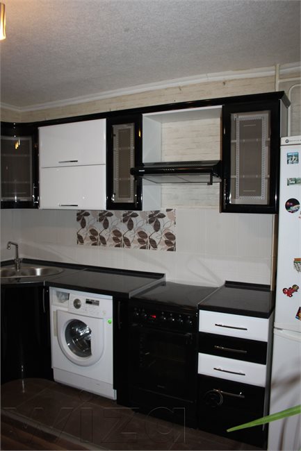 • Сочитание двух материалов:шпона и краски,делает кухню практичной и яркой.