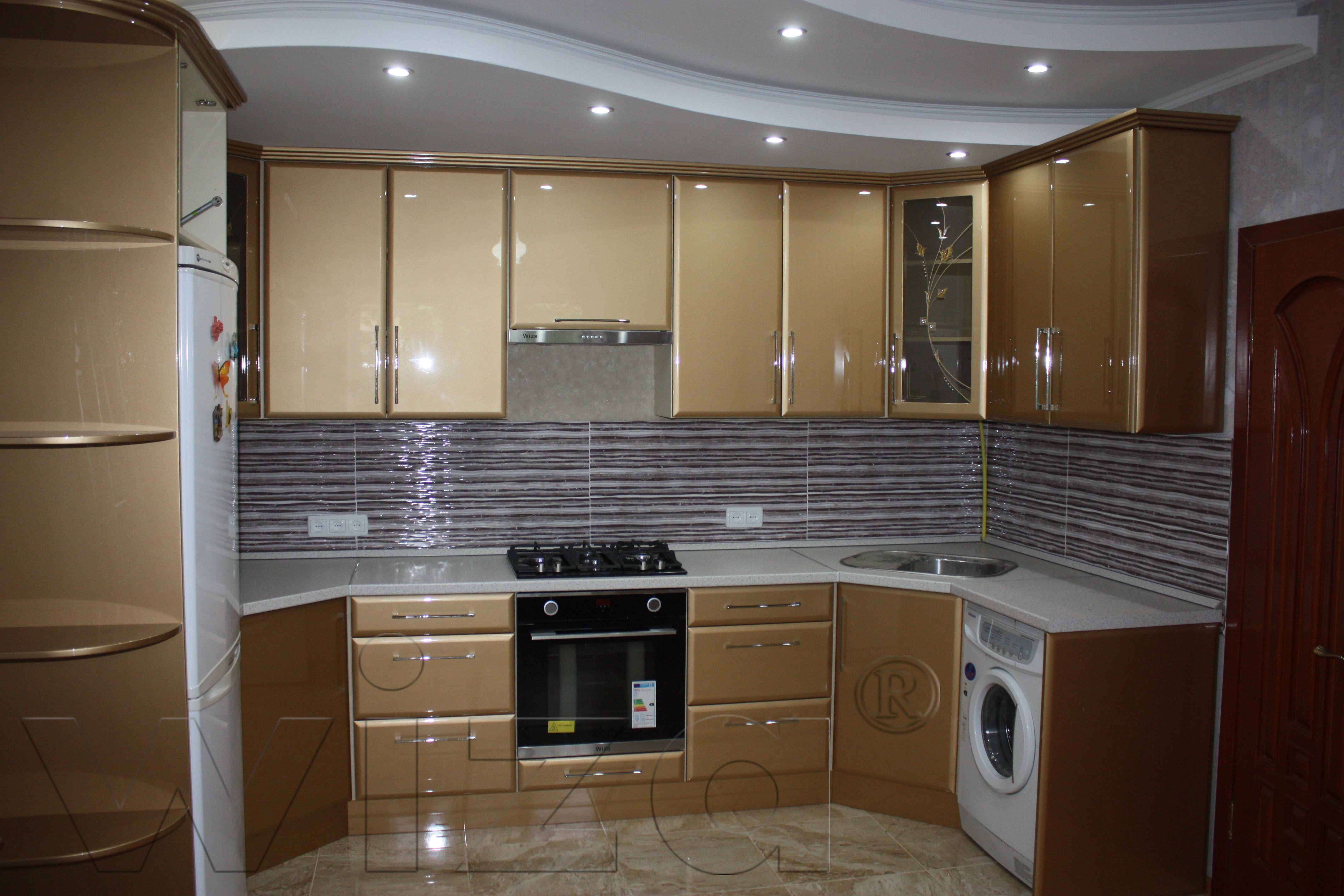 • Применение гнутых фасадов придает особую пластичность дизайну кухни.