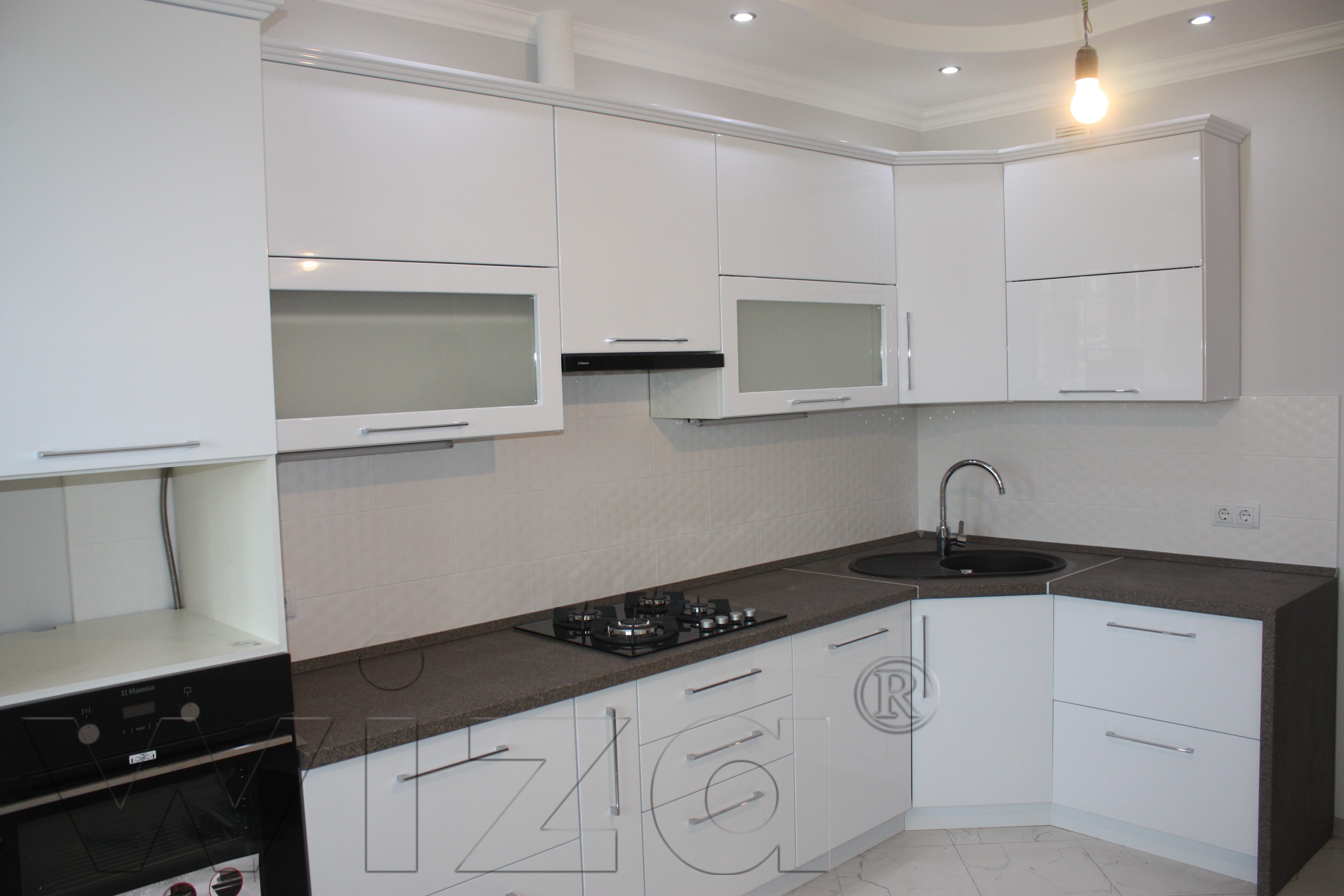 • Применение гнутых фасадов придает особую пластичность дизайну кухни.