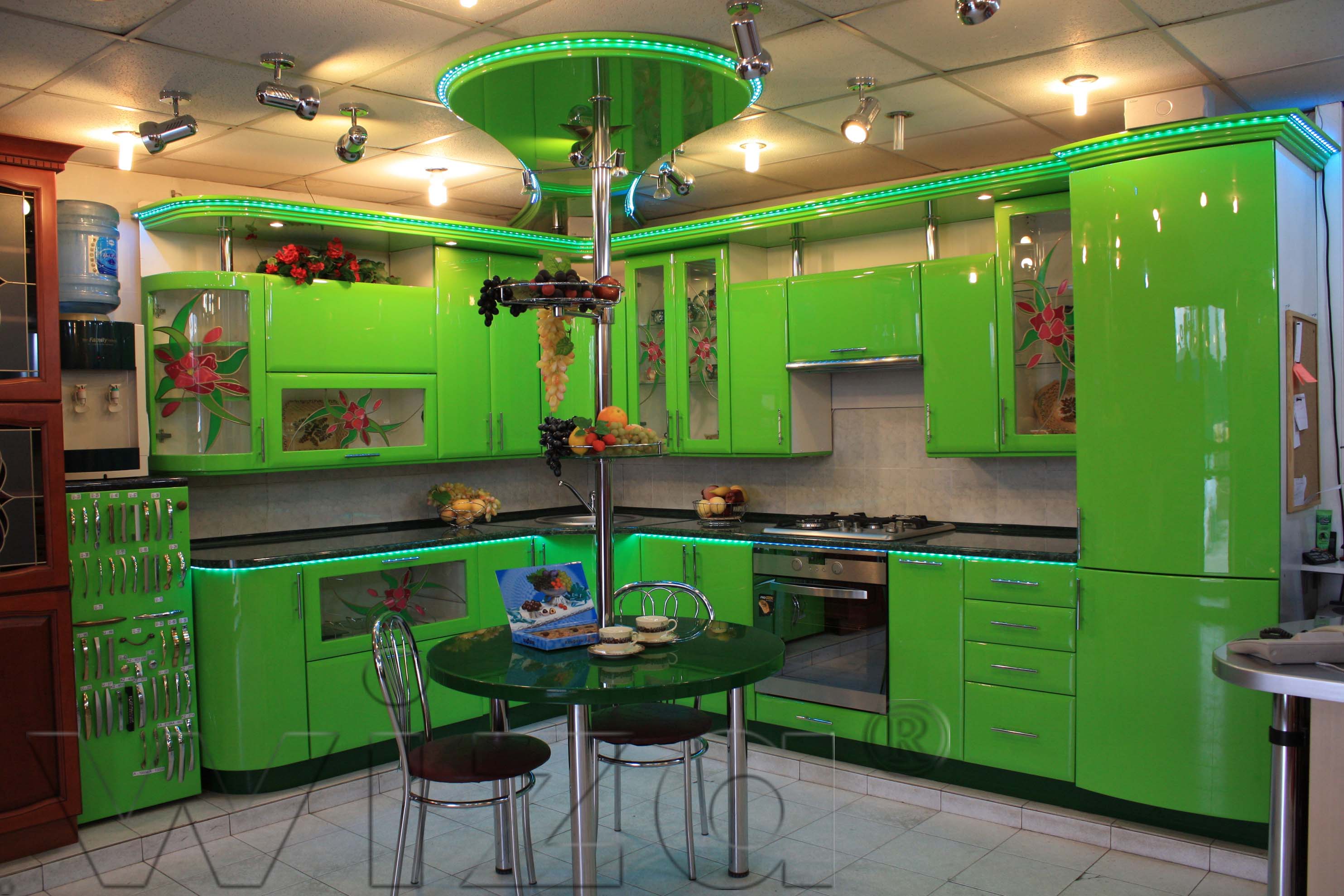 • Глянцевый блеск крашеной кухни делает помещение светлее.