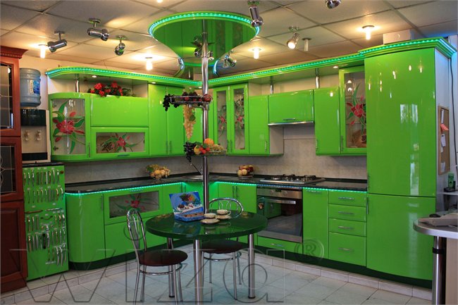 • Яркий цвет кухни поднимает настроение ее владельцам.