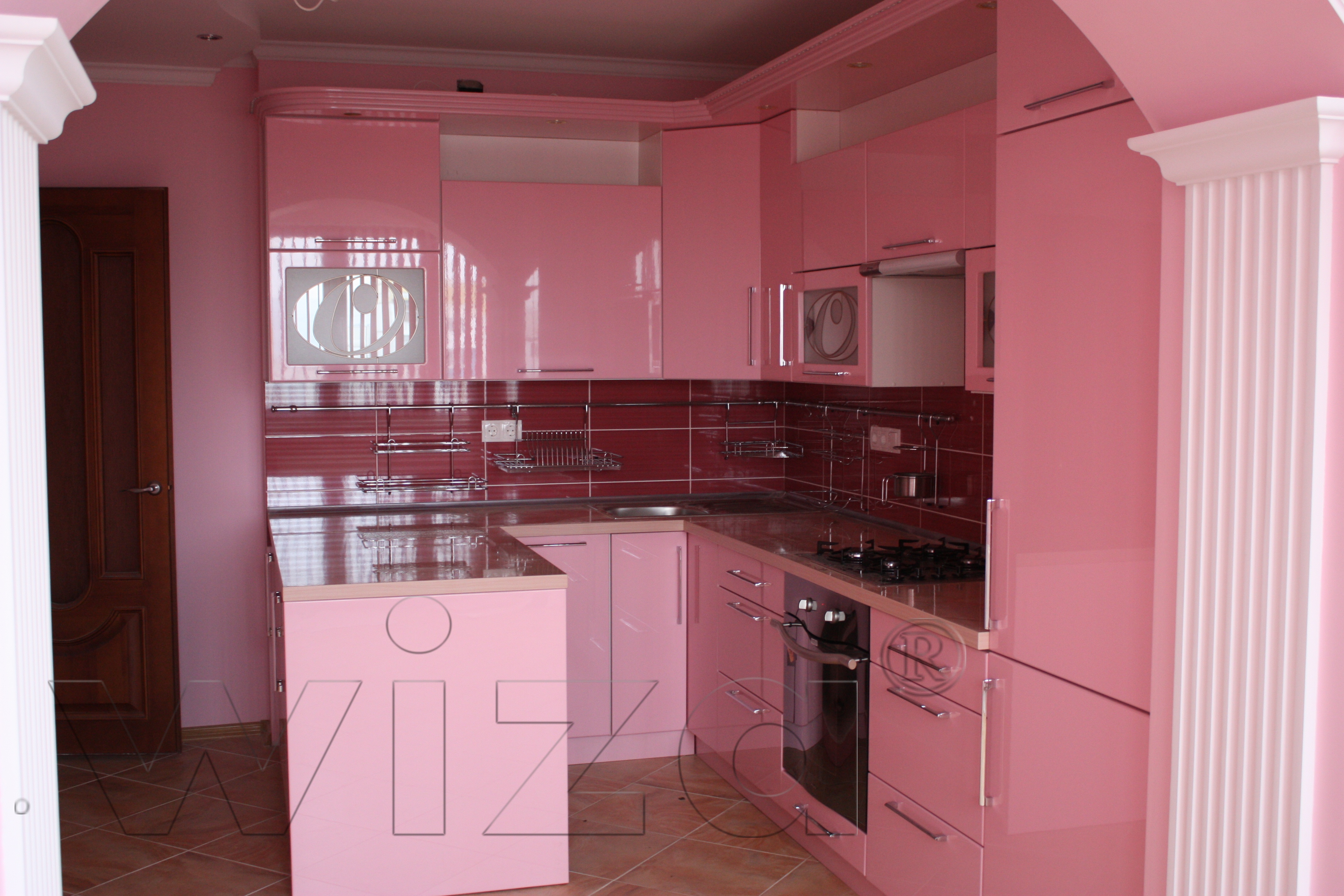 • Глянцевый блеск крашеной кухни делает помещение светлее.