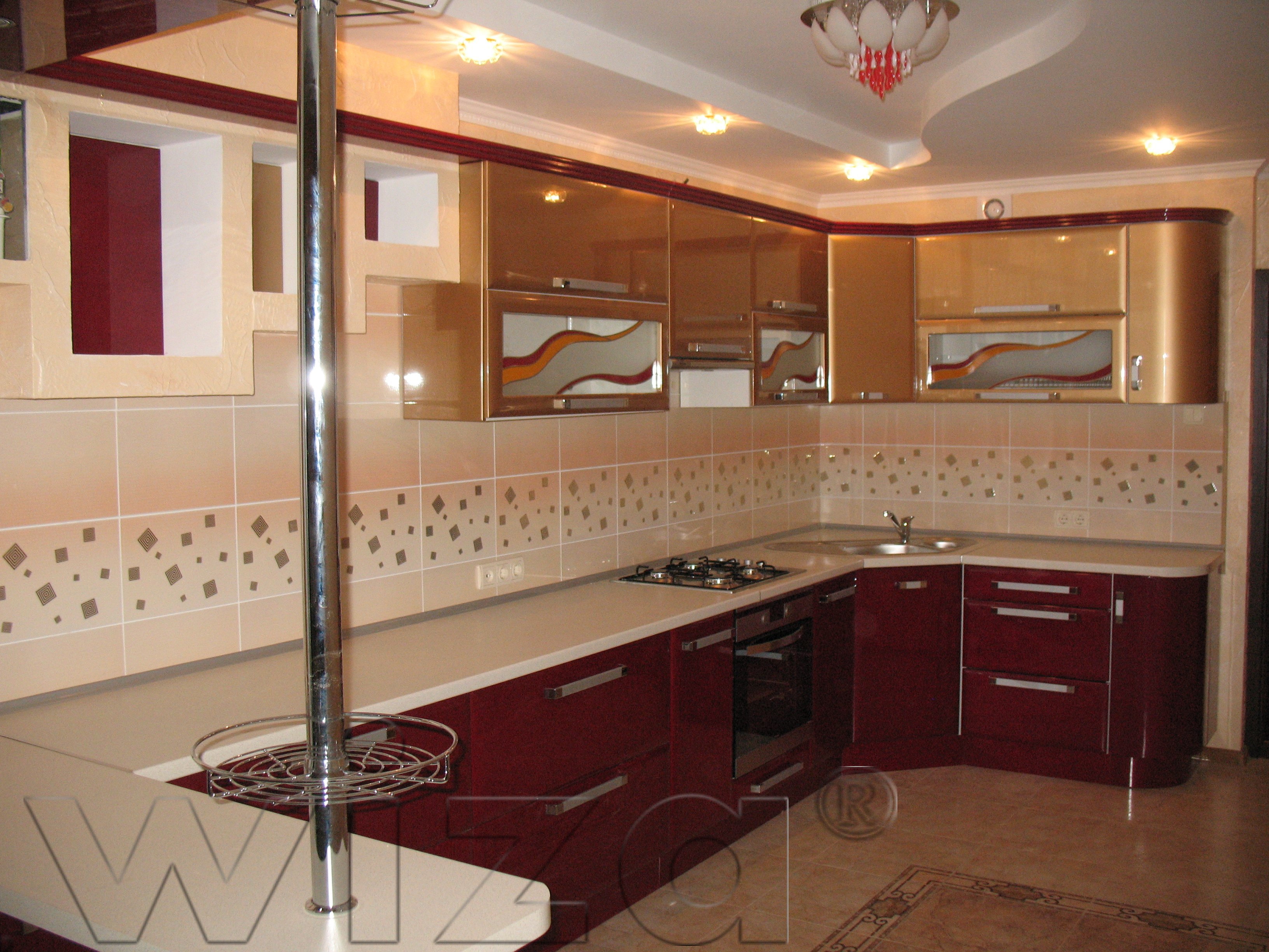 • Применение гнутых фасадов придает особую пластичность дизайну кухни.