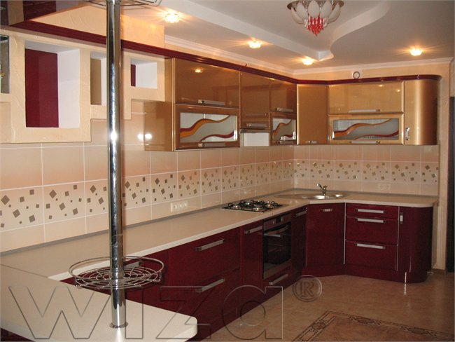 • Глянцевый блеск крашеной кухни делает помещение светлее.