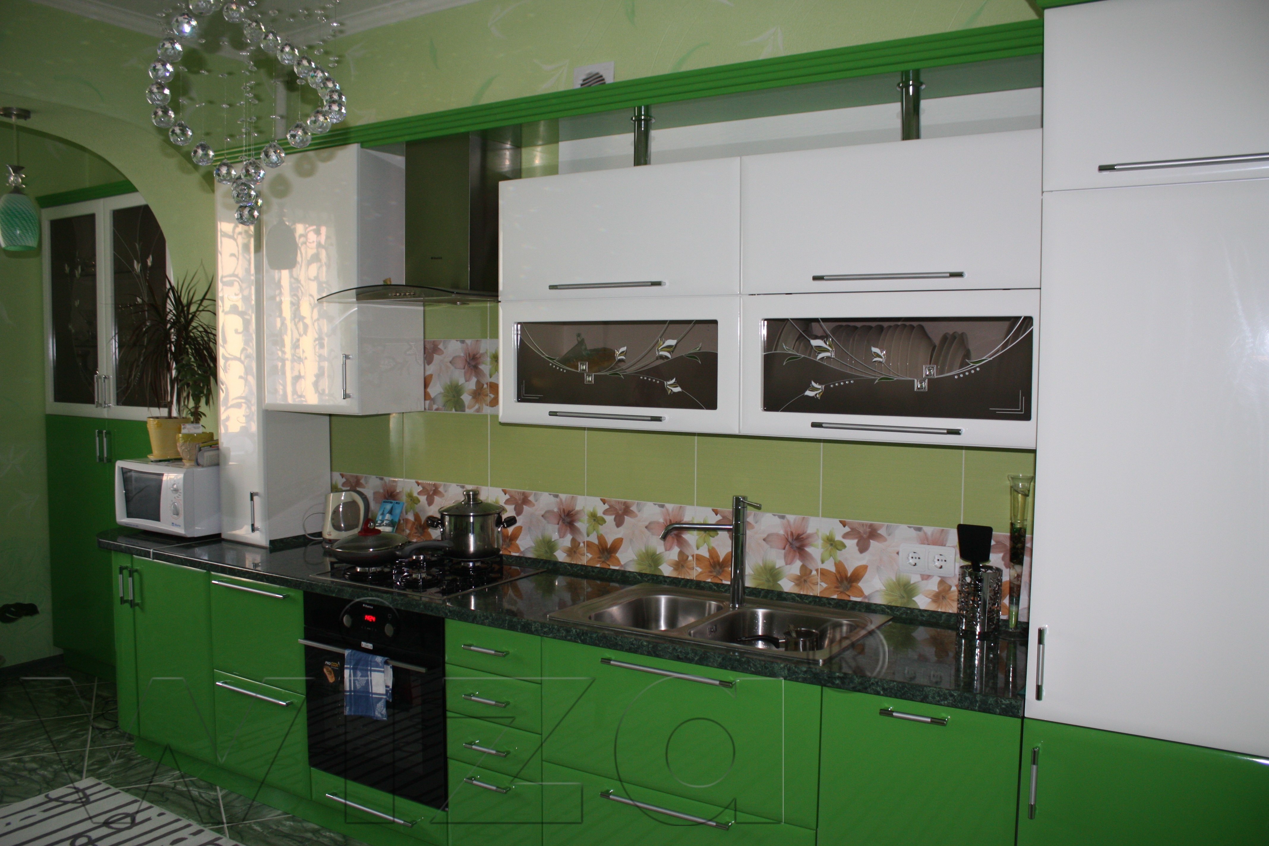 • Глянцевый блеск крашеной кухни делает помещение светлее.