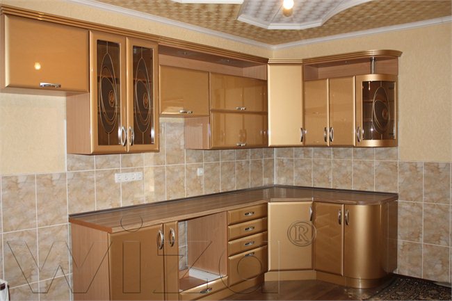 • Применение гнутых фасадов придает особую пластичность дизайну кухни.