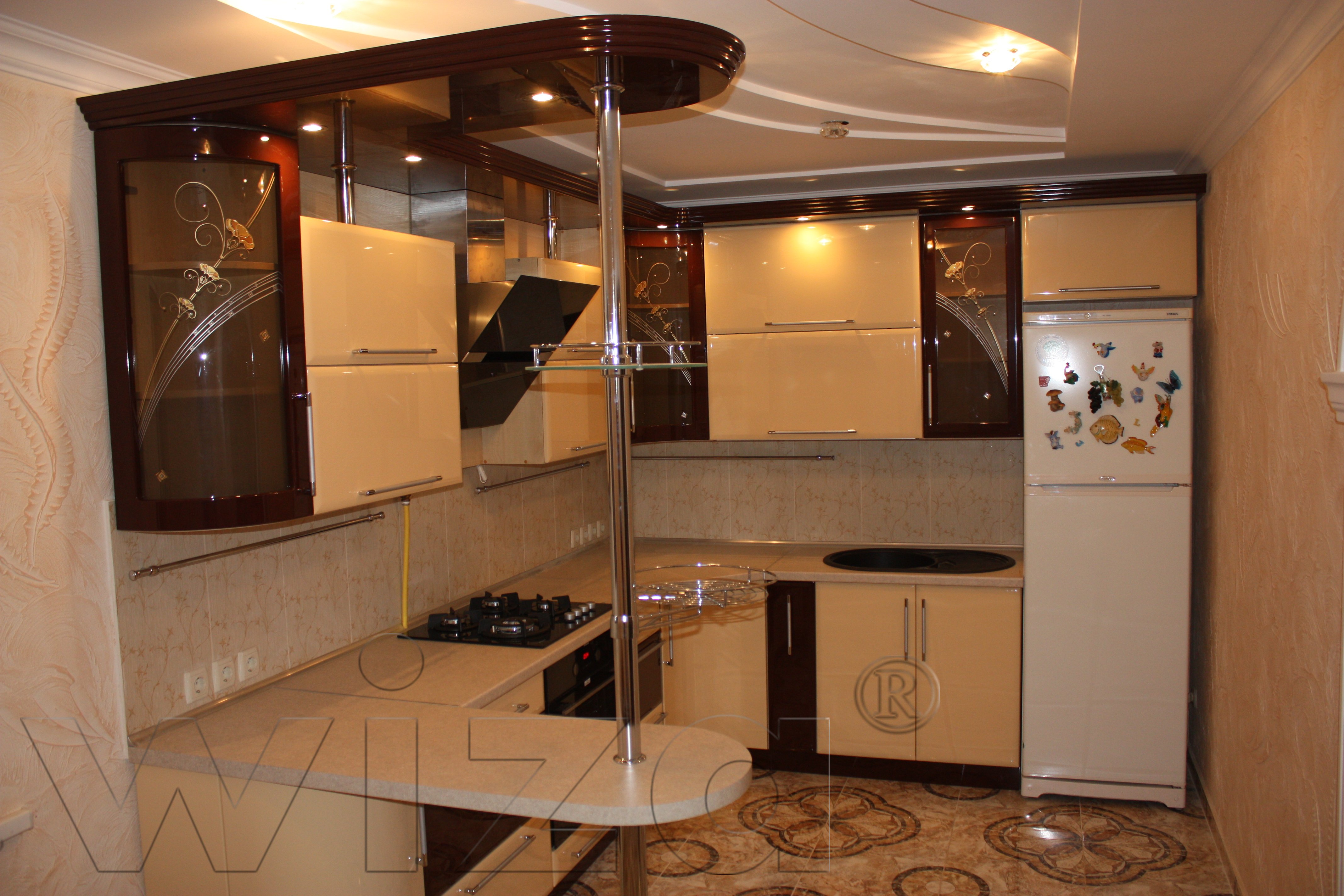 • Применение гнутых фасадов придает особую пластичность дизайну кухни.