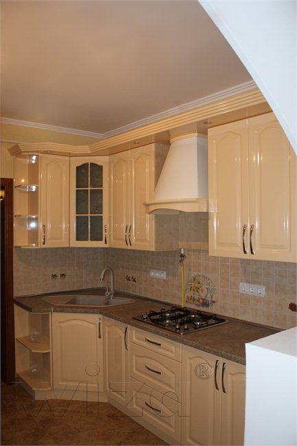• Глянцевый блеск крашеной кухни делает помещение светлее.