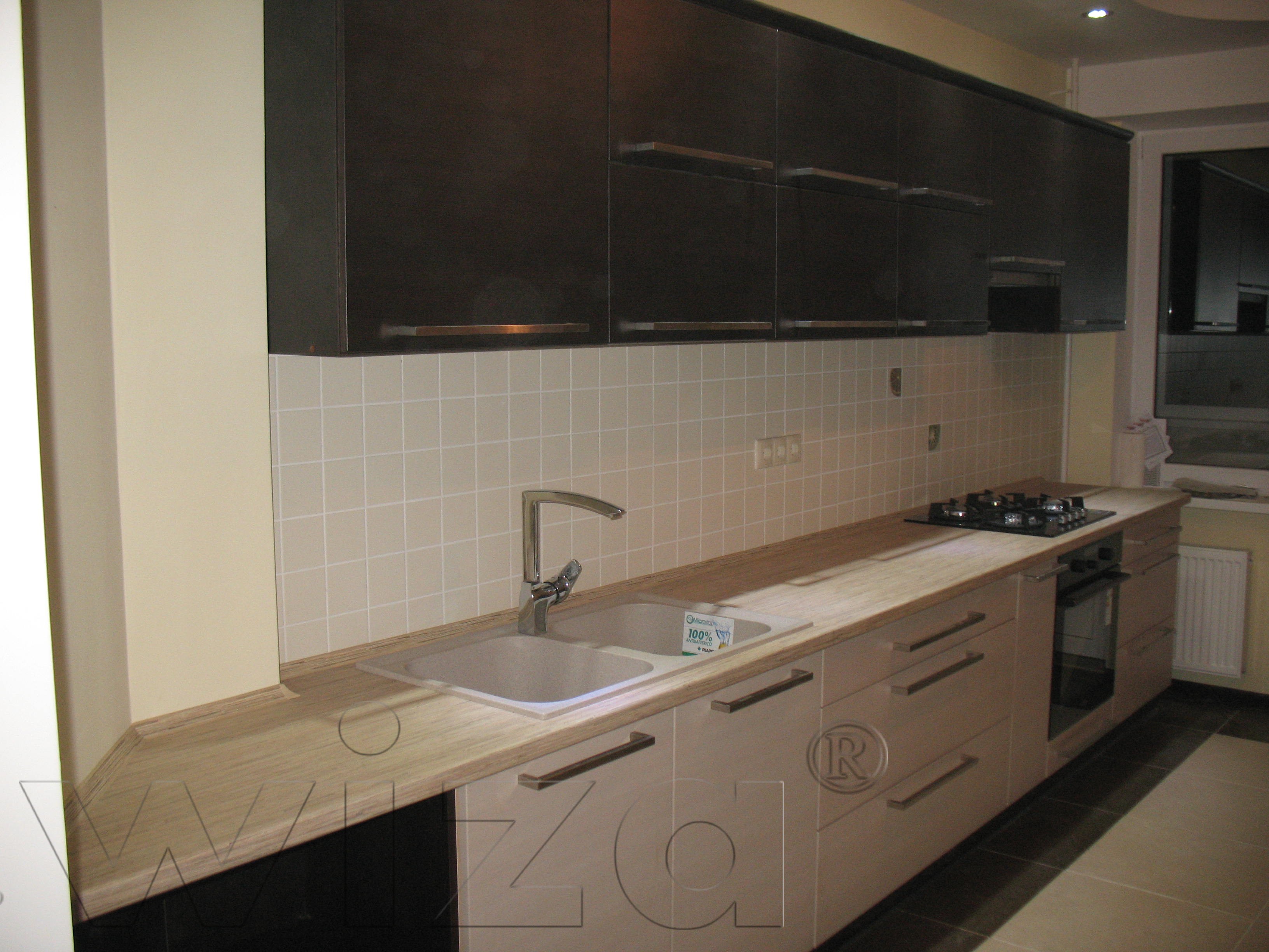 În magazinele partenerilor noştri este prezentată întreaga gamă de bucătării, produse sub marca Wiza. Culorile şi texturile suplimentare le puteţi vedea pe mostrele materialelor. Dar să determinaţi după mostră, cît de frumos se va privi un material în bucătăria reală, este destul de dificil. Culoarea poate să vă placă pe mostra mică şi să nu vă placă în bucătăria finisată, sau invers. De aceea, vă propunem să faceţi cunoştinţă cu fotografiile bucătăriilor finisate – asta vă va ajuta să decideţi, cum se priveşte atare sau atare culoare şi textură a materialului în bucătăria finisată.