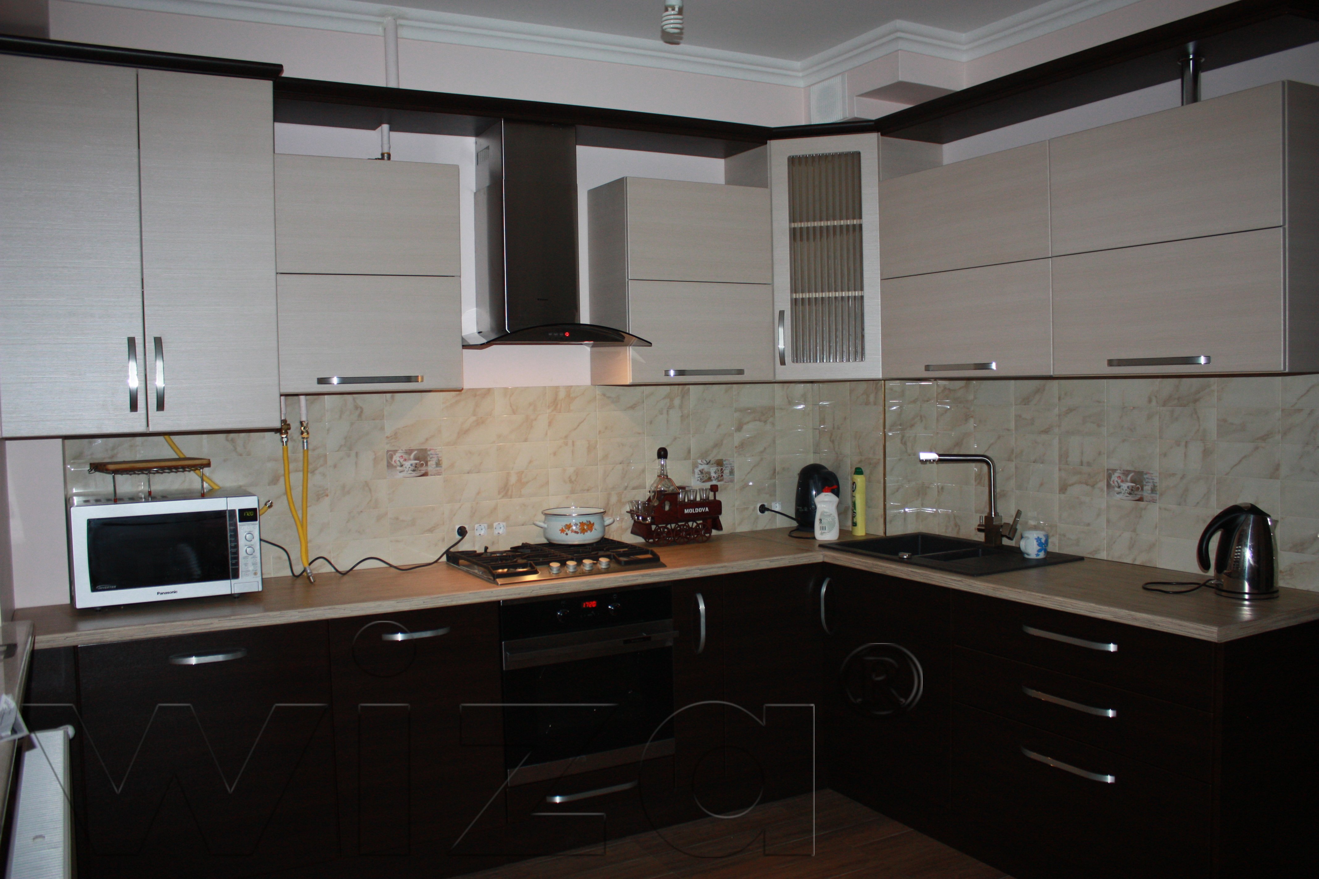• Приятное цветовое сочетание придает кухне благородный вид.