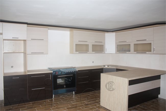 • Классический дизайн кухни обеспечивает цвет натурального дерева и фреза.