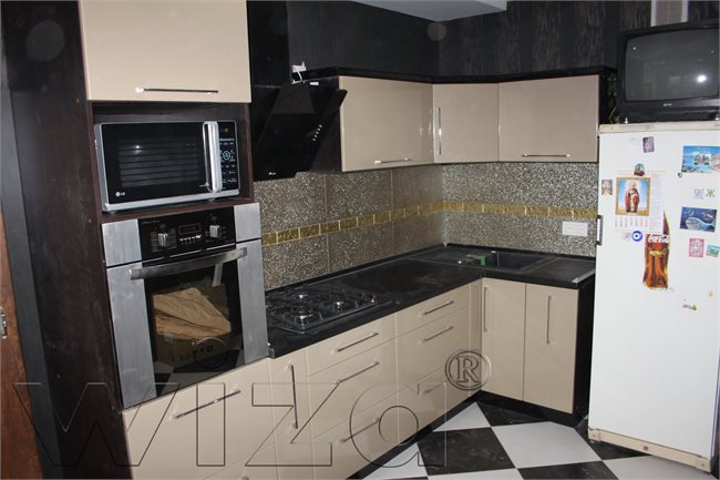 • Приятное цветовое сочетание придает кухне благородный вид.