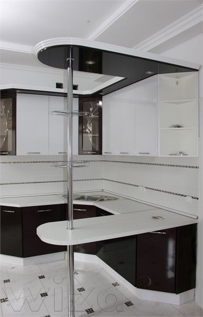 • Солидная кухня с необычной, двухэтажной барной стойкой.