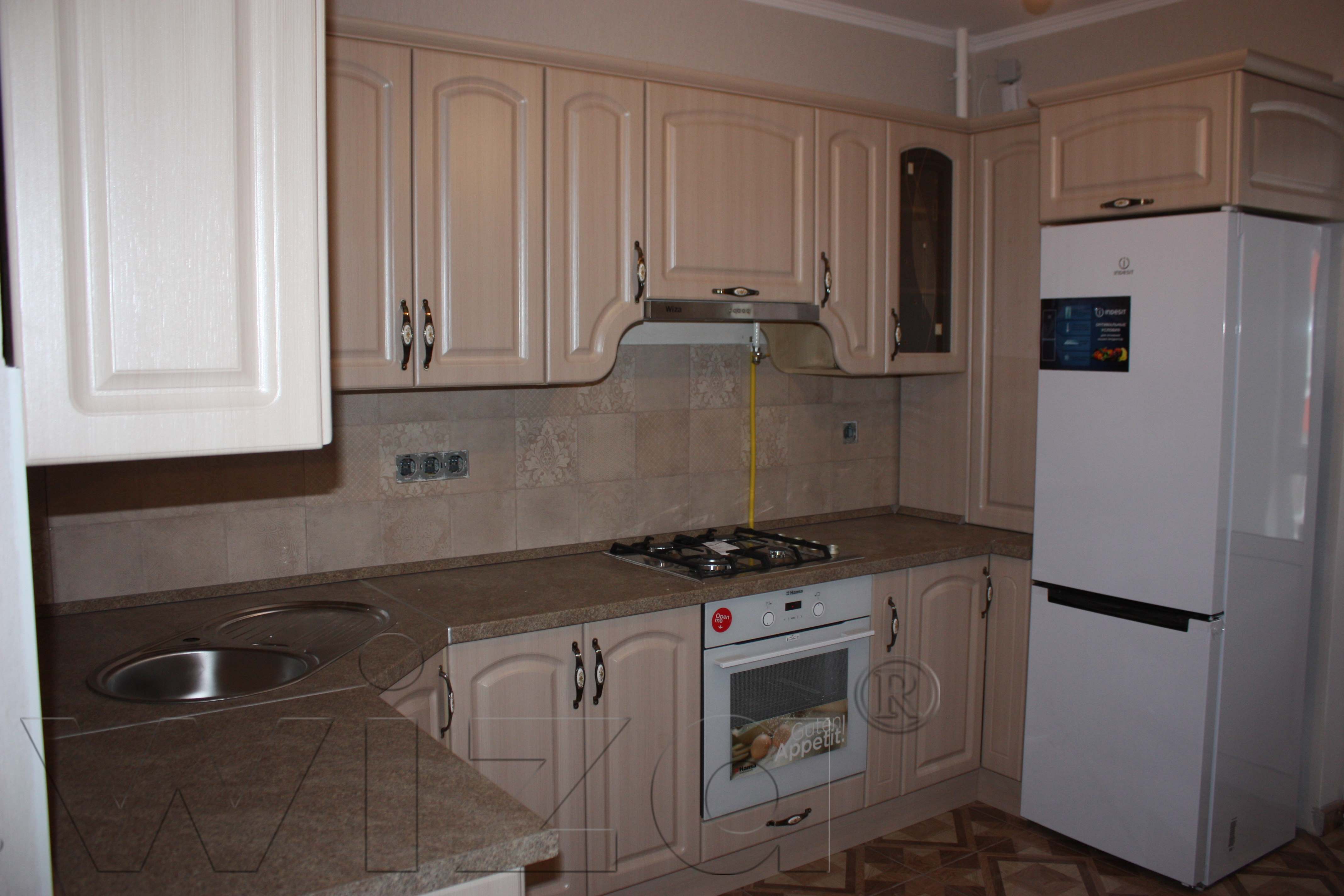 • Классический дизайн кухни обеспечивает цвет натурального дерева и фреза.