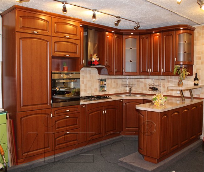 • Классический дизайн кухни обеспечивает цвет натурального дерева и фреза.