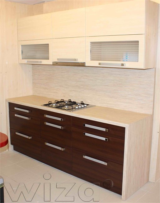 În magazinele partenerilor noştri este prezentată întreaga gamă de bucătării, produse sub marca Wiza. Culorile şi texturile suplimentare le puteţi vedea pe mostrele materialelor. Dar să determinaţi după mostră, cît de frumos se va privi un material în bucătăria reală, este destul de dificil. Culoarea poate să vă placă pe mostra mică şi să nu vă placă în bucătăria finisată, sau invers. De aceea, vă propunem să faceţi cunoştinţă cu fotografiile bucătăriilor finisate – asta vă va ajuta să decideţi, cum se priveşte atare sau atare culoare şi textură a materialului în bucătăria finisată.