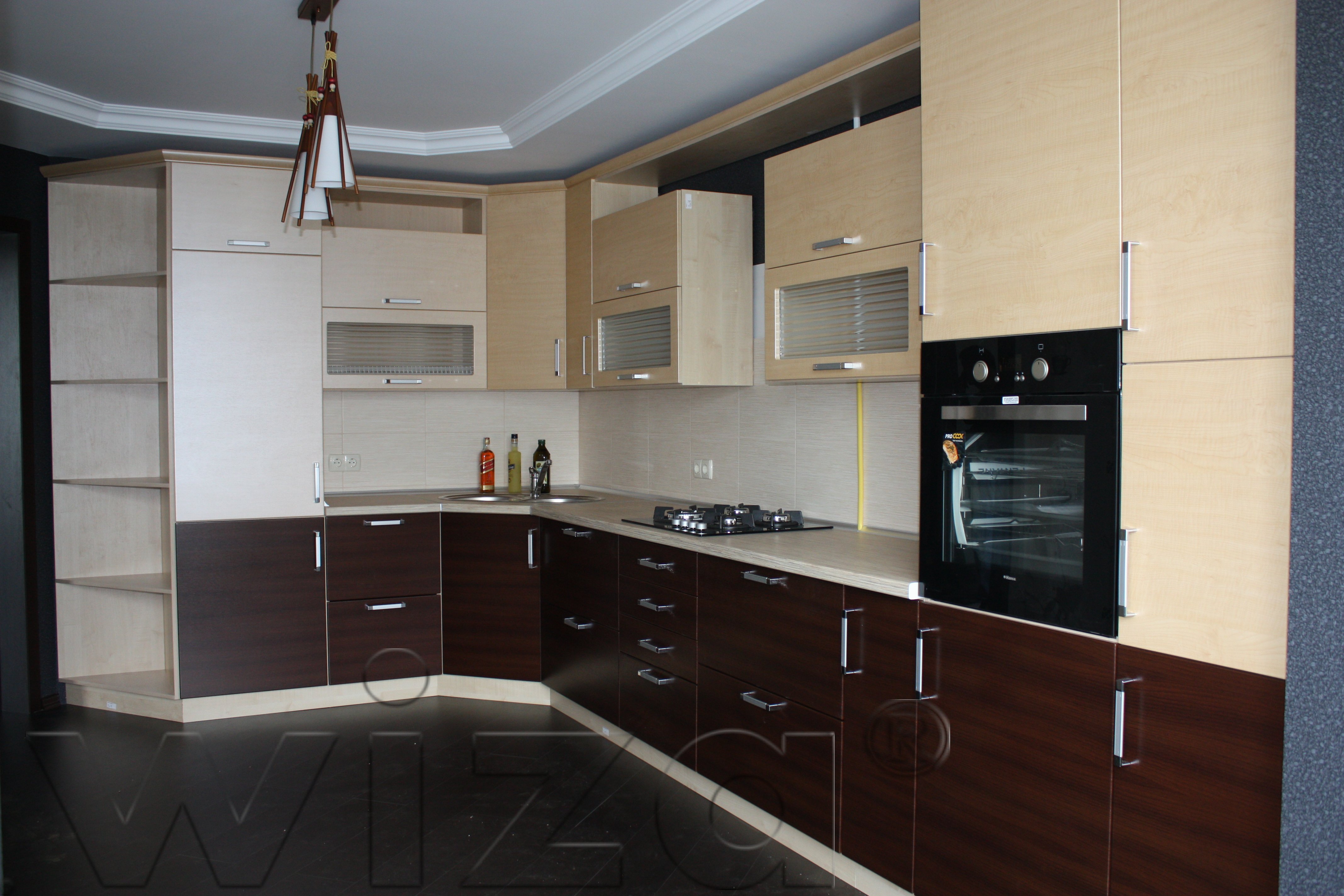 • Классический дизайн кухни обеспечивает цвет натурального дерева и фреза.