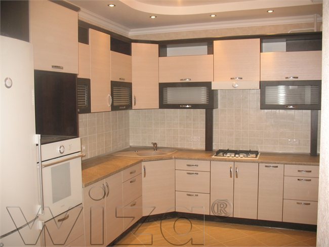 • Классический дизайн кухни обеспечивает цвет натурального дерева и фреза.