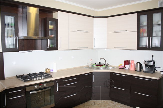 • Приятное цветовое сочетание придает кухне благородный вид.