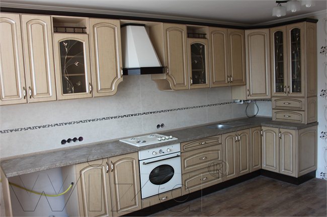 • Классический дизайн кухни обеспечивает цвет натурального дерева и фреза.