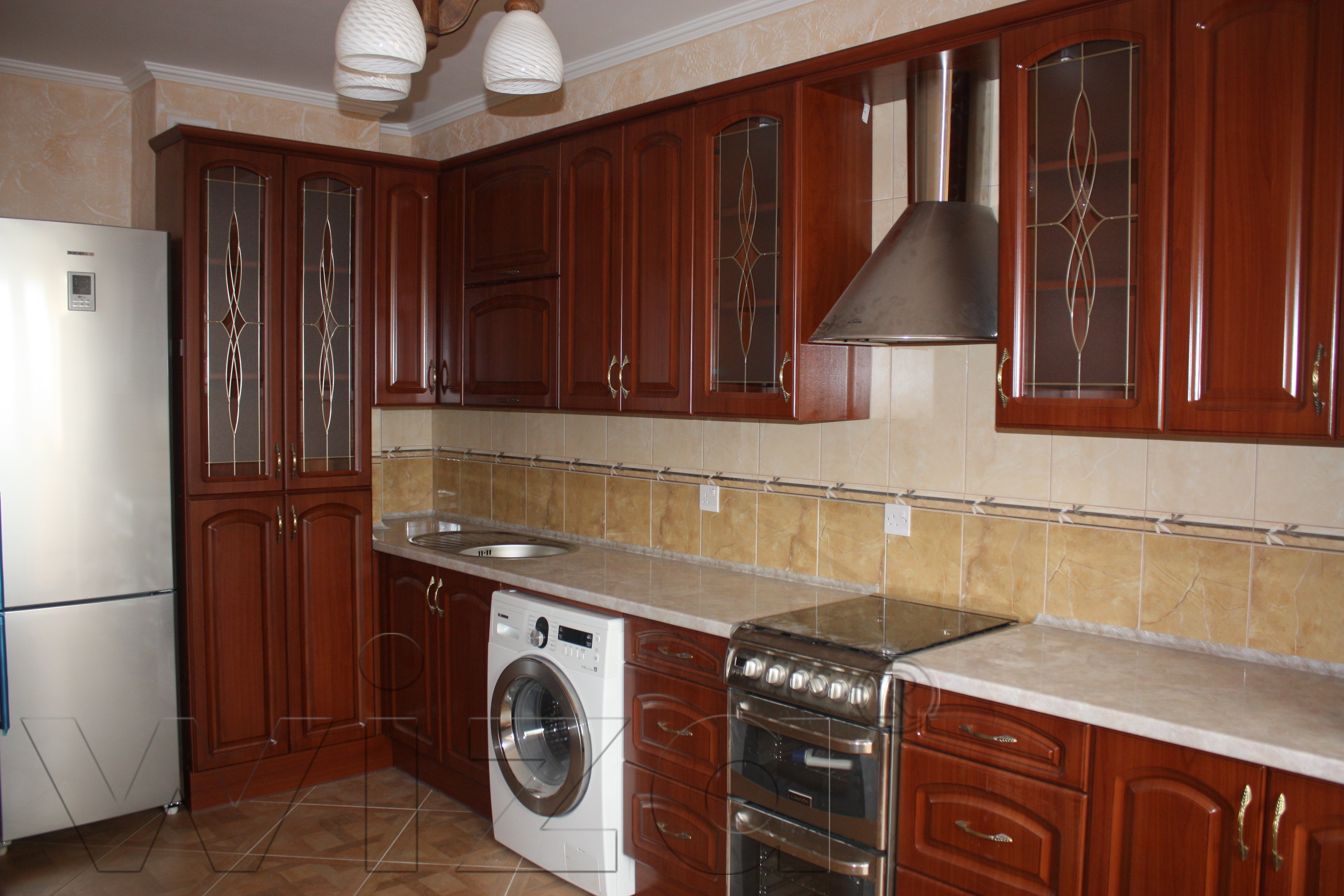 • Классический дизайн кухни обеспечивает цвет натурального дерева и фреза.