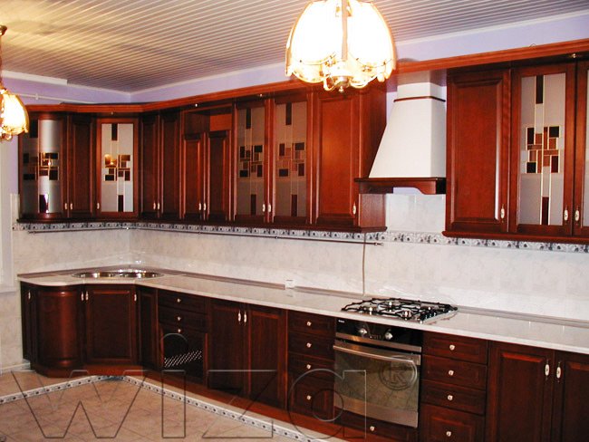 • Традиционные деревянные фасады кухни перемежаются классическими витражами.