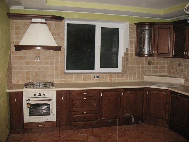 Классическая кухня с фасадами из натурального дерева и ручками в стиле ретро.
