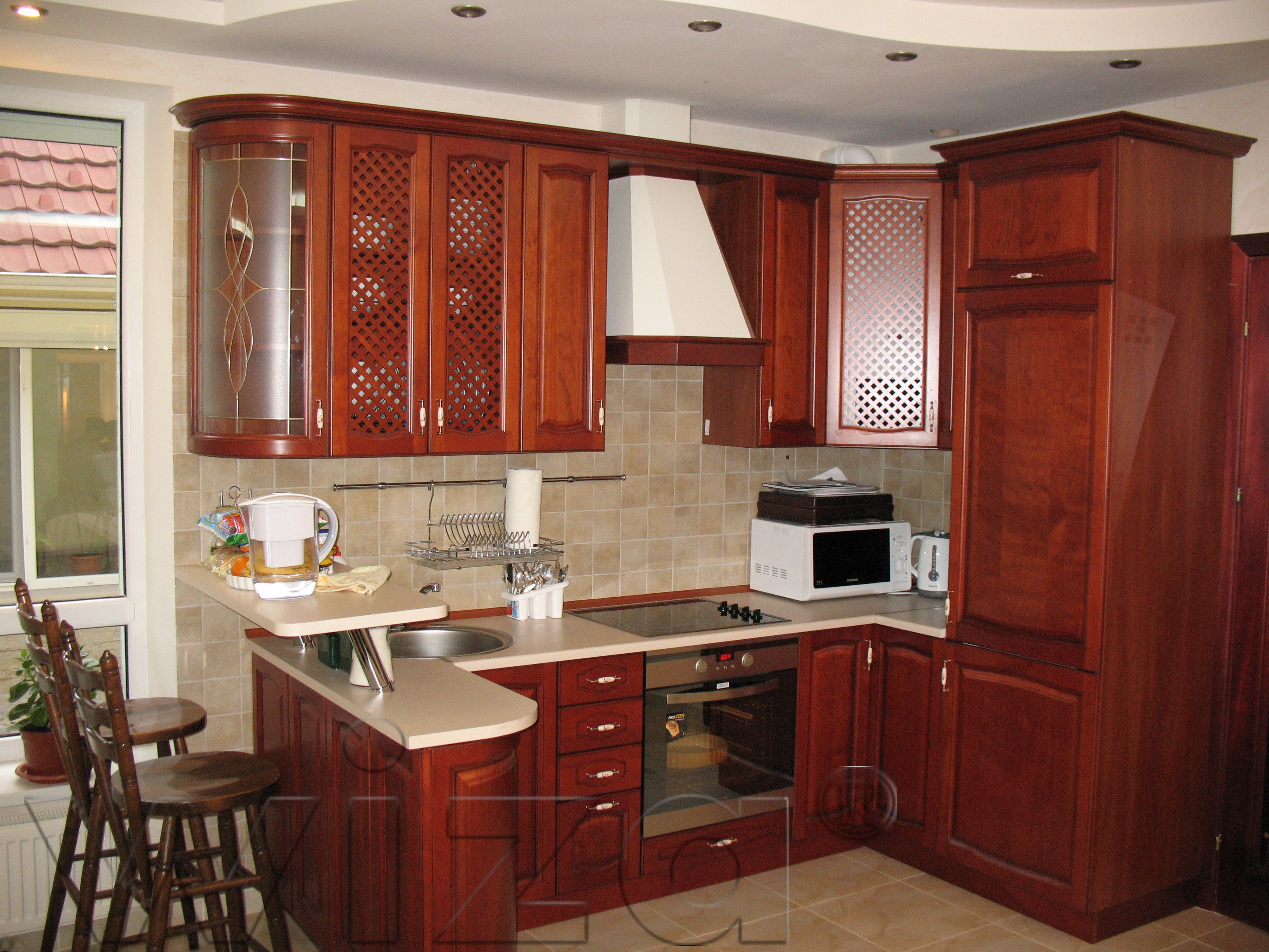 • <em>Кухонная мебель с фасадами из массива черешни выглядит аристократично.</em>