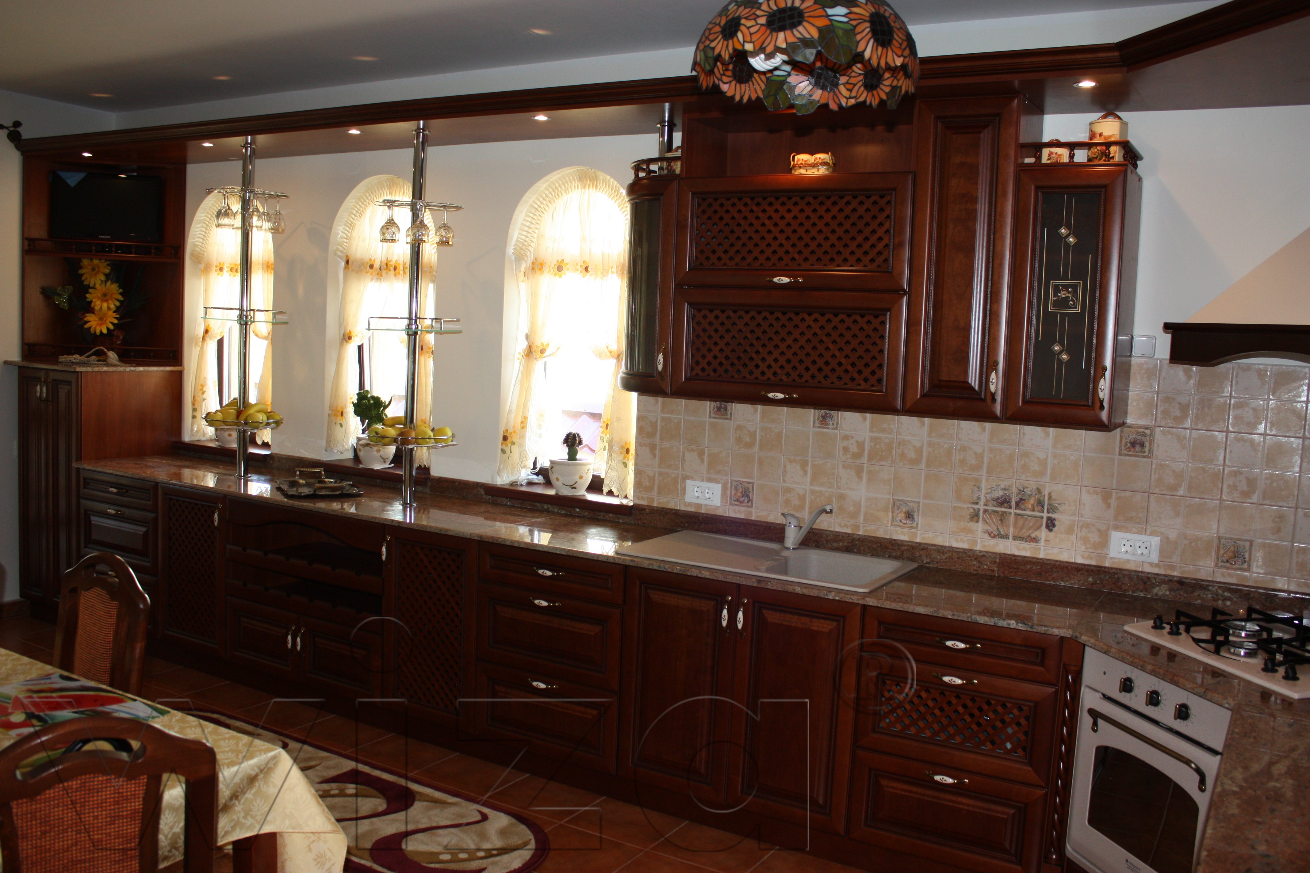 • Традиционные деревянные фасады кухни перемежаются классическими витражами.