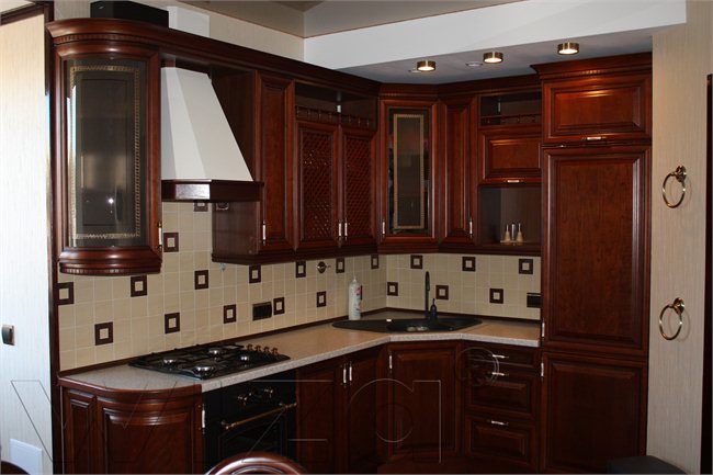 • Эта угловая кухня с деревянными фасадами выполнена в классическом итальянском стиле.