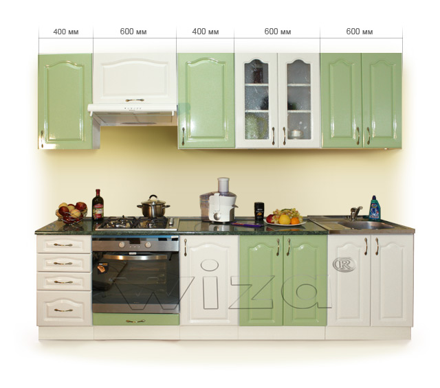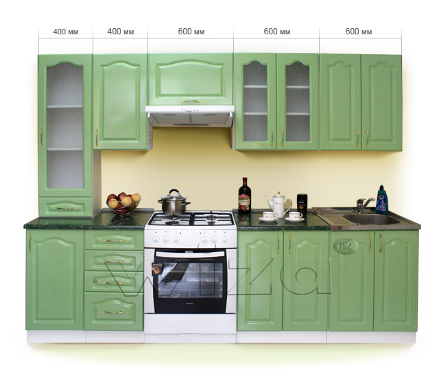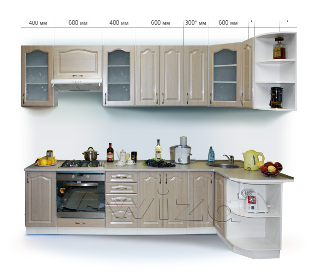 "металлик". Столешница глянец толщ. 28 мм -"Kronopol". Включает 9 типовых модулей.