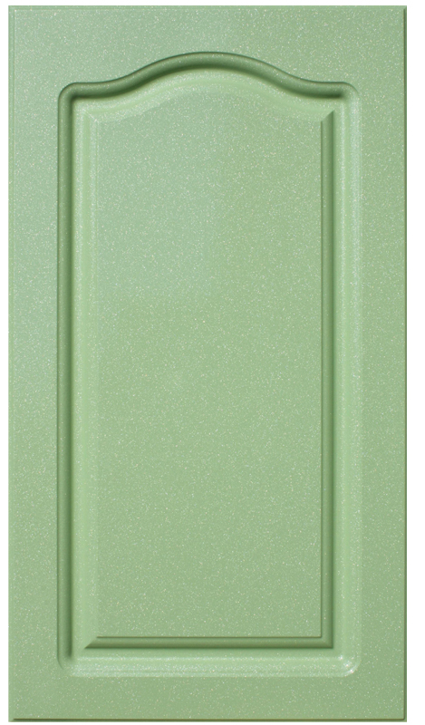 Кухня, с ламинированными фасадами глянцевой пленкой PVC, салатового цвета с эффектом