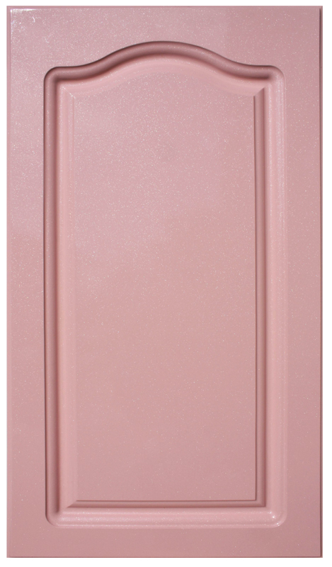 Кухня, с ламинированными фасадами глянцевой пленкой PVC, розового цвета с эффектом