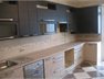 • Солидная кухня с необычной, двухэтажной барной стойкой.